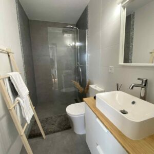 • a bathroom with shower